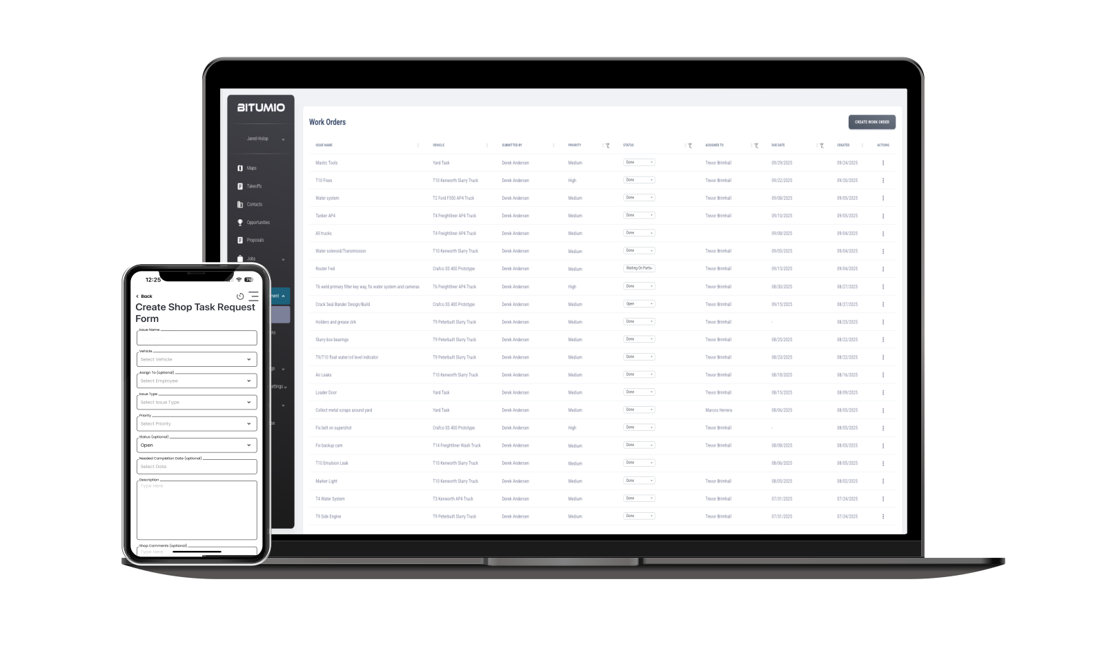 Push all the Job details in the palm of your hand. Tell your crews, where they are going, how much material is needed, what equipment is needed and more. The Bitumio Mobile App is available on iPhone and Android.